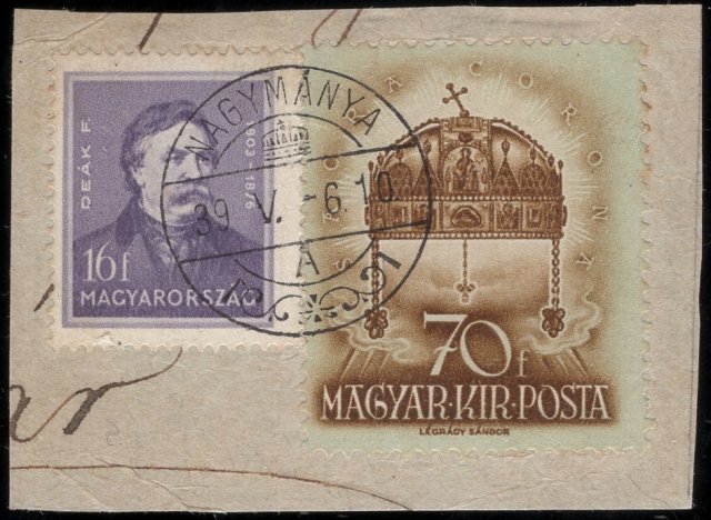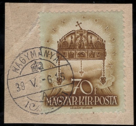 3Egy bélyeggyűjtő azonban 1938-ban egy Nagymányáról kapott postai küldeményen felfedezte, hogy a barna színű 70 filléres bélyegről hiányzik a HAZATÉRÉS 1938 felirat. Ezt követően derült ki, hogy egy ívről véletlenül lemaradt a harmadik menetben nyomtatott HAZATÉRÉS 1938 felirat, mivel ez az ív valószínűleg összeragadhatott egy másik ívvel és ezt követően épp a visszacsatolt területen lévő felvidéki Nagymánya település postájára került ahol ebből 62 darabot fel is használtak. A posta intézkedett a 38 darabos maradvány bevonására, melyből 14 darabot protokoll célokból elajándékoztak egy 24 darabos ív pedig a Bélyegmúzeumba került. Ez az ív egyedi filatéliai termék, nemzeti vagyonelem, így piaci forgalomba sem kerülhet soha. Az értékét felbecsülni is lehetetlen, a szakértők szerint ha forgalomba kerülne értéke fél milliárd forint körül lenne. |