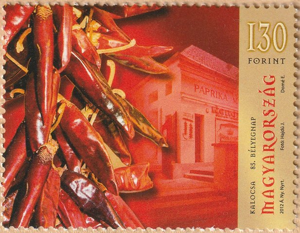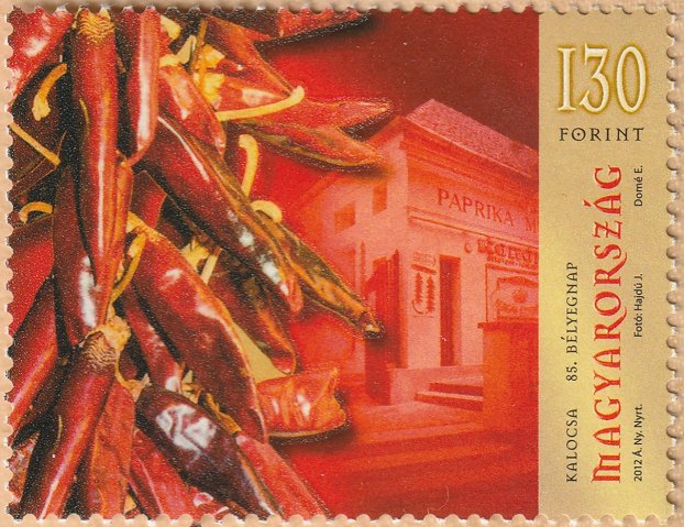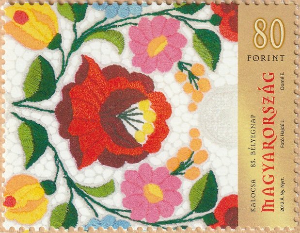 A 2012-es Bélyegnapra készült miniatűr műalkotások különleges eszközökkel mutatják be hazánk keresztény hagyományait, a kalocsai népművészet egyedi hímzésmutívumát és a magyar gasztronómia különleges alapnyagát. A Kalocsa-kollekció egyik bélyege valódi kalocsai hímzéssel készült,, mely filatéliai rikaságank számít. Egy másik bélyeg pedig a kalocsai paprikát ábrázolja, amely nélkül elképzelehetetlen a magyar konyhára jellemző íz és színvilág. Ez a bélyeg olyan speciális nyomdatechnológiával készült, mely mikrokapszulákba zárva a paprika különleges illatát tartalmazza.